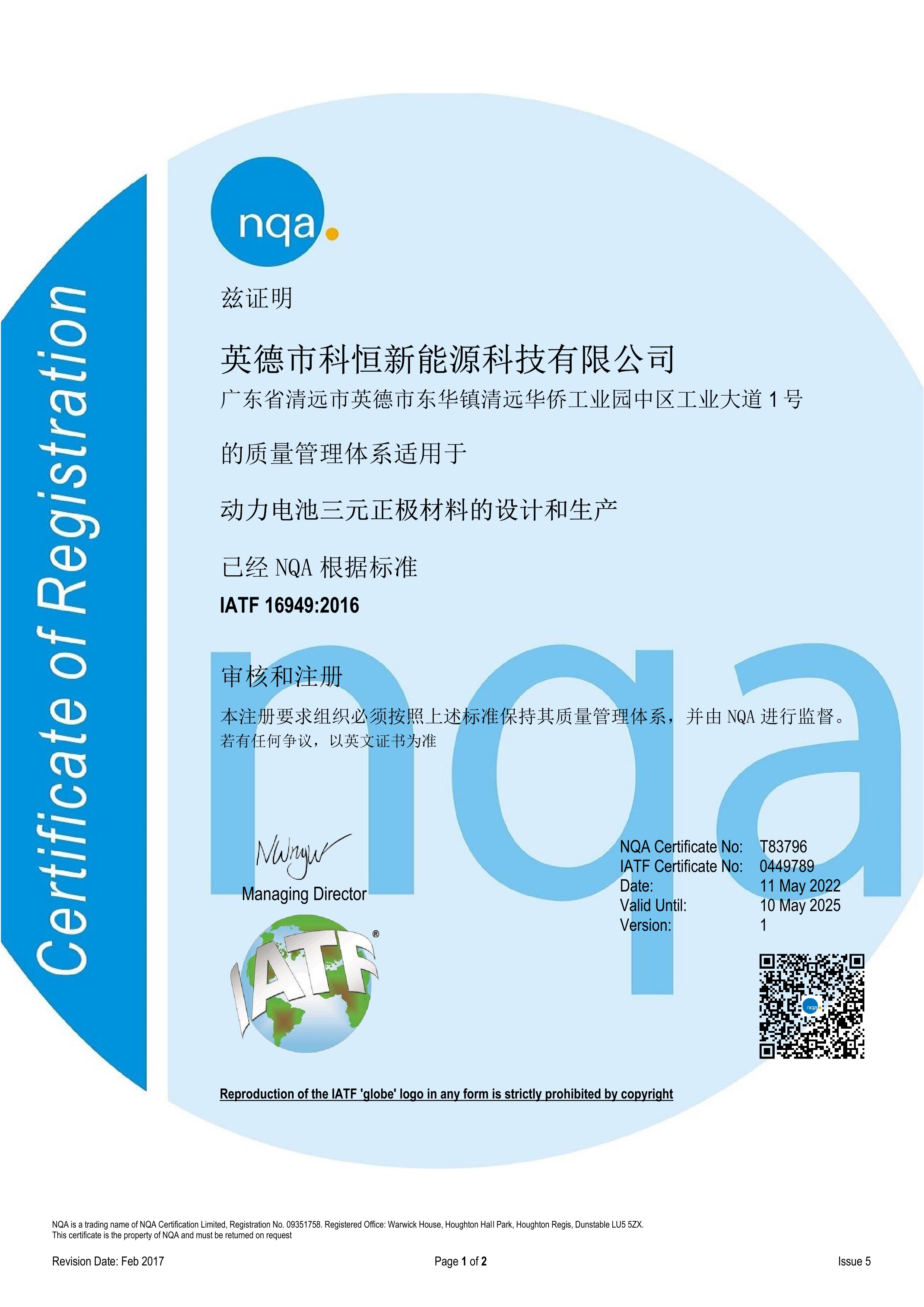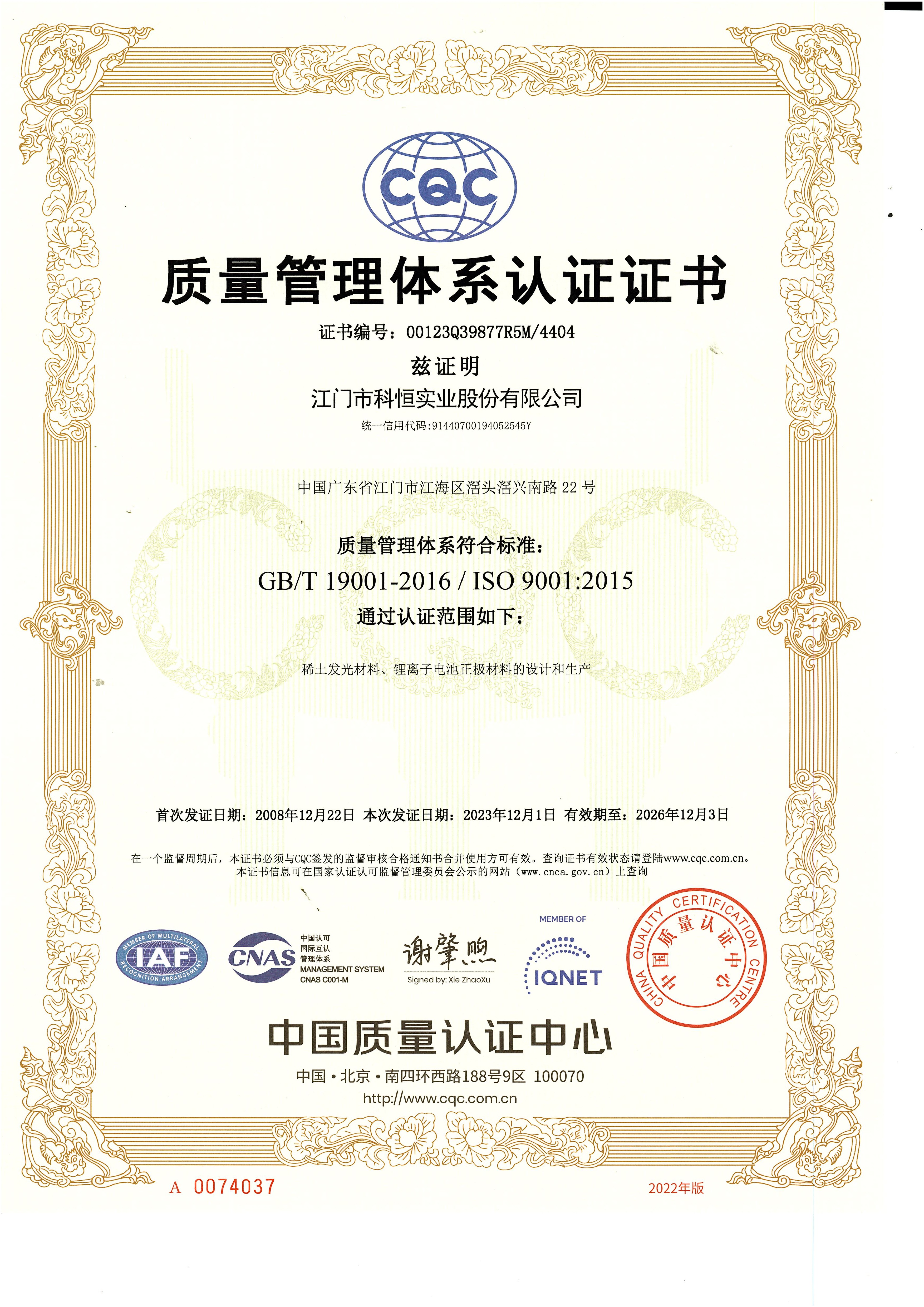 科恒堅(jiān)持“科技卓越、永恒追求、質(zhì)量第一、客戶至上”的質(zhì)量方針,設(shè)立各級質(zhì)量控制體系,保證產(chǎn)品質(zhì)量。公司先后通過了ISO9001質(zhì)量管理體系認(rèn)證和ISO14001環(huán)境管理體系認(rèn)證。公司以滿足客戶需求為宗旨,以卓越的科技成果、完善的制造過程,制造一流的產(chǎn)品、增值的服務(wù)、共享的價值,讓客戶滿意。